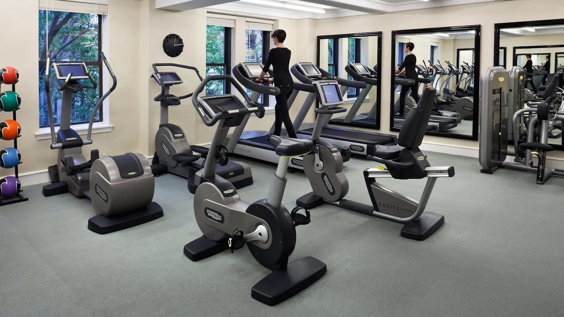 The hotel also has a fitness area with elliptical machines and treadmills.